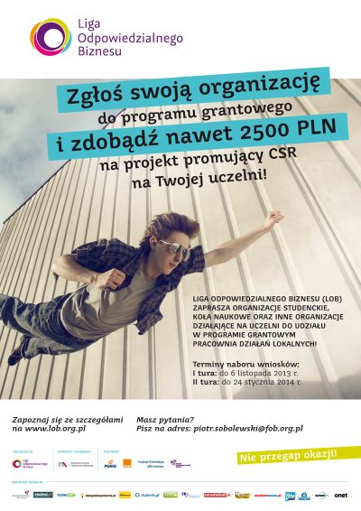 O dofinansowanie przez LOB mogą ubiegać się organizacje studenckie, koła naukowe, organizacje pozarządowe działające na uczelni, chcące zrealizować projekt promujący i edukujący o społecznej odpowiedzialności biznesu. Kwota dofinansowania może wynieść nawet do 2 500 zł.